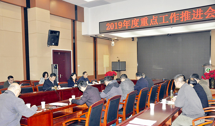 3月21日下午,学校召开2019年度重点工作推进会。校长曹云霞主持会议。副校长余永强、肖圣龙出席会议。