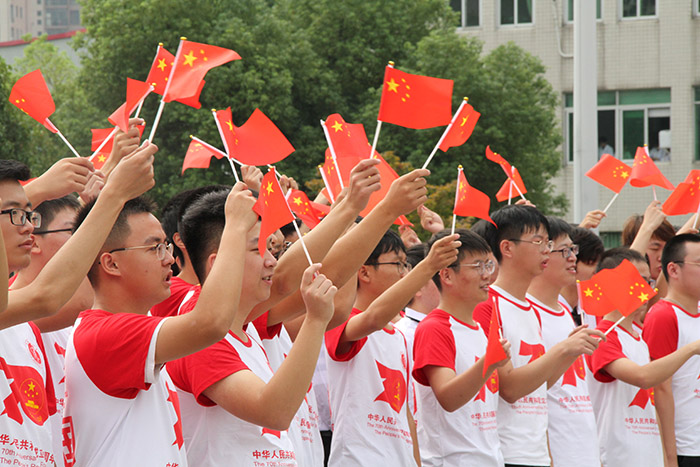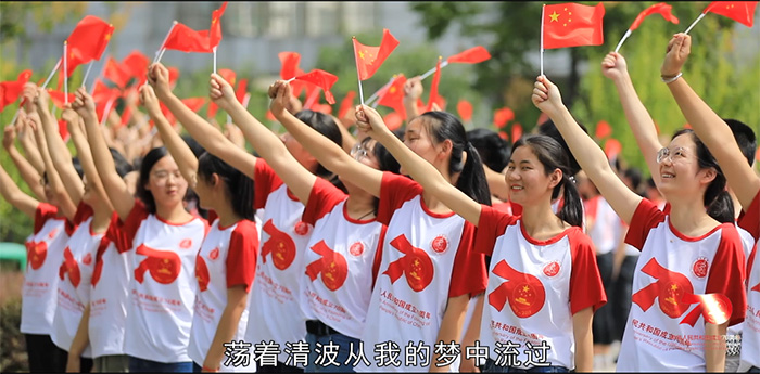 拍摄中,来自我校教学、科研、医疗、管理、后勤一线的教职工和一千余名学生参与本次活动。他们以饱满的热情和嘹亮的歌声,为祖国的繁荣昌盛送去最诚挚的问候与祝福。