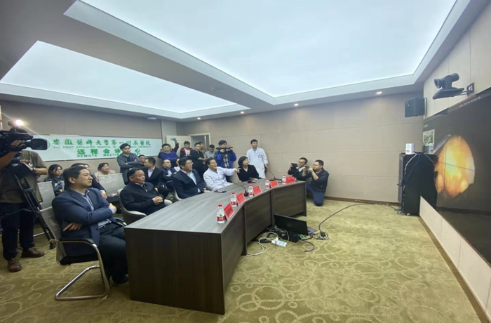 上午9时,在距离合肥270多公里的濉溪县医院里,一台泌尿外科手术正在进行。与此同时,手术全过程通过5G信号和装有4K摄像头的手术系统分别传输到了第一附属医院互联网医院远程会诊中心和广州医科大学附属第一医院移动会诊平台,泌尿外科两位专家梁朝朝、曾国华提供远程指导。一个小时后,手术顺利完成。该例手术是我省首例“5G+4K”跨省远程协同手术,标志着安徽省远程医疗实现新的进步,这些技术应用也将为医院医联体建设提供新的技术支持。