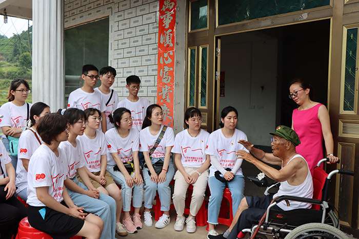 在革命老区安徽太湖,第一临床医学院“医+N”暑期社会实践团队在辅导员老师的带领下开展党史学习教育,寻访红色印记,在刘畈乡九田村,实践队员冒雨走访慰问了92岁高龄的老兵詹绪凤,聆听老战士讲述红色故事。