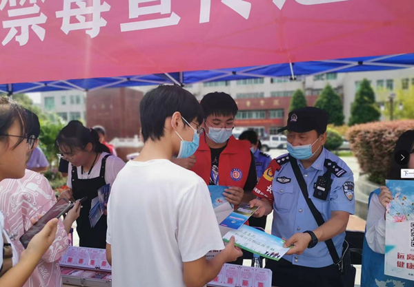 活动搭设宣传展台,摆放宣传展板,陈设多种禁毒宣传单、宣传折页和毒品模型。学校禁毒志愿者服务队在现场引导学生扫码关注“中国禁毒”微信、“合肥禁毒举报平台”小程序,民警在现场对参加活动的大学生们宣讲毒品危害。