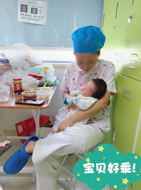 在大家贴心的照料下,“小可爱”不怎么哭闹了,喝奶的时候也特别香。