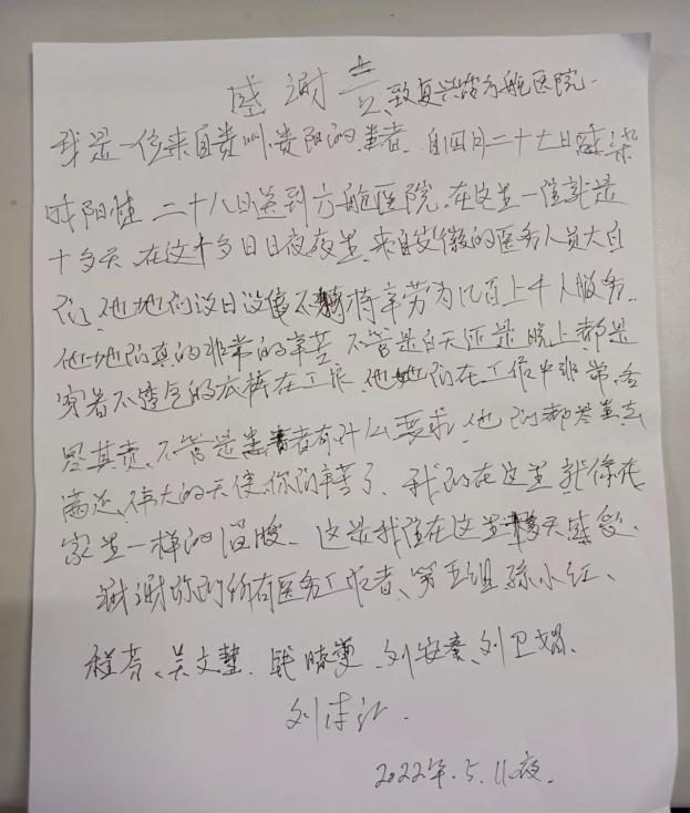 记得一位来自贵州的大叔说:“真的太感谢你们了,是你们挽救了我的生命。”为此,他专门给我们写了封感谢信。
