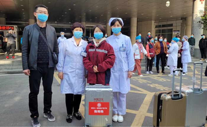 出征前,张主任、张护士长、刘浩梅老师及科室姐妹们前来送行,她们语重心长地交代我一定要做好个人防护,保护好自己,有什么问题及时和他们沟通。期待我圆满完成任务,在家等我凯旋归来!