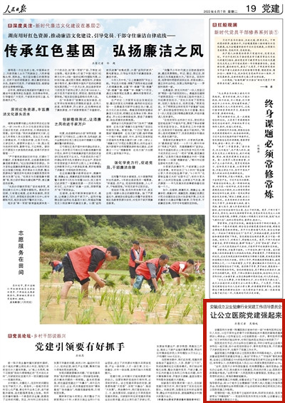 基层党建工作质量关系公立医院发展水平和服务能力。近年来,安徽省坚持把支部建在科室上,推动“双带头人”“双培养”等机制落地,全省公立医院超过95%的临床医技科室党支部书记由业务骨干担任,学科带头人、优秀青年医务人员占2021年度发展党员数的66.5%。