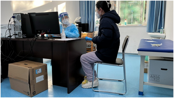 为优化患者的就医环境,该校校医院在门诊二楼开设东西两处入口,实行体温正常与异常患者双通道,最大程度减少院内交叉感染,保护医护及师生的健康。体温正常的师生可以从西侧入口进入校医院进行正常诊疗活动。学校师生如果出现发热等新冠症状,可以随时拨打24小时防新冠应急值班电话,或者直接到校医院最东侧的24小时值班室,进行体温测量和抗原检测,并根据抗原结果进行开药和对症处理。如果在寝室没办法出来或者核酸阳性的师生,可以让其他同学或同事过来代就诊,内科医生通过视频连线问诊开药让他们带回。