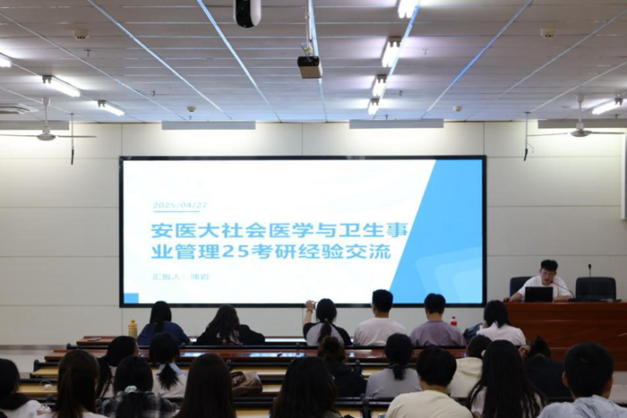 4月28日,卫生管理学院在铜陵路校区开展本科生考研经验分享会,5位考研成功毕业生担任主讲。活动同步开通线上直播通道,梅山路校区和新医科中心学生远程参与。